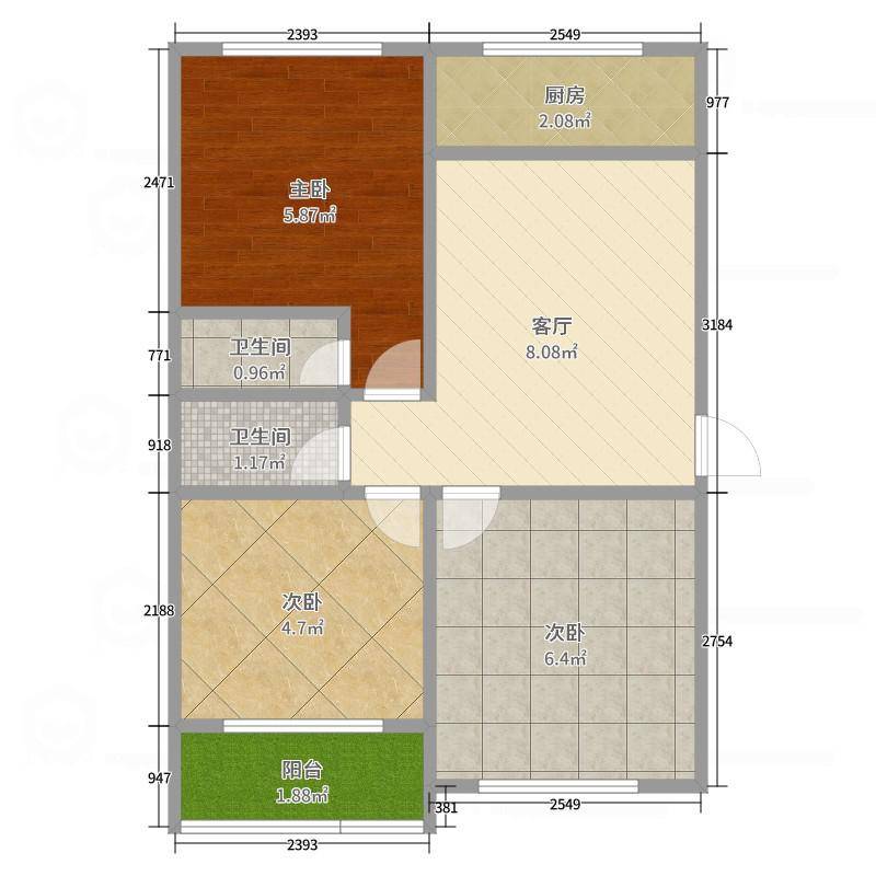 房屋户型: 三室一厅