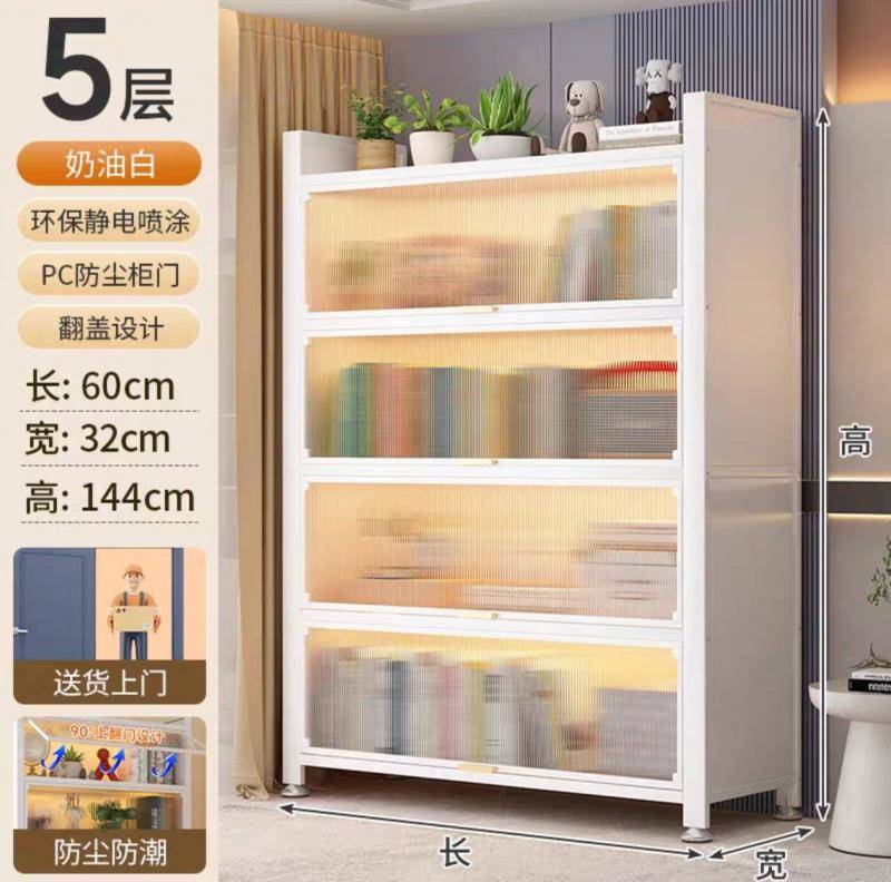 防尘铁艺翻门家用书柜客厅卧室多层落地置物柜学生儿童书架收纳柜95元168