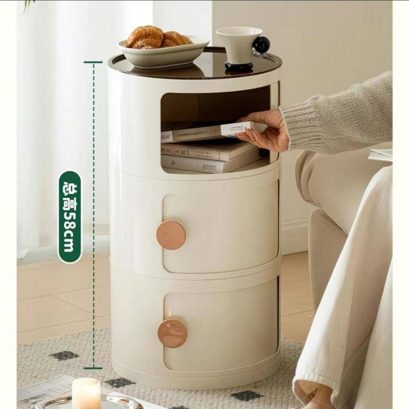 奶油风卧室圆形柜子多巴胺简约现代小户型床头柜边几49元98